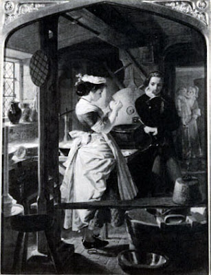painting: Edward H. Corbould, Hetty and Captain Donnithorne in Mrs. Poyser's Dairy